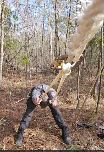 But if you think you might also use your rope with a tree or a pole outside as an anchor, or as a tool to secure a load, make a stretcher, or help safely cross streams, etc., consider the coarser lay as the preferred rope. In the Bando System, our “yoga props” (dhanda staff, longyi rope, Min Zin rocks) are used not only for Bando Yoga but also as tools.