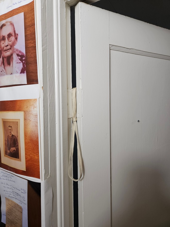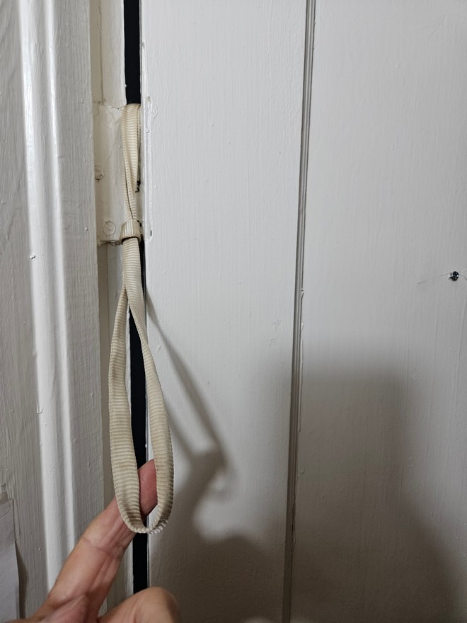 Anchor for door hinge – a loop of nylon tubular webbing – $5