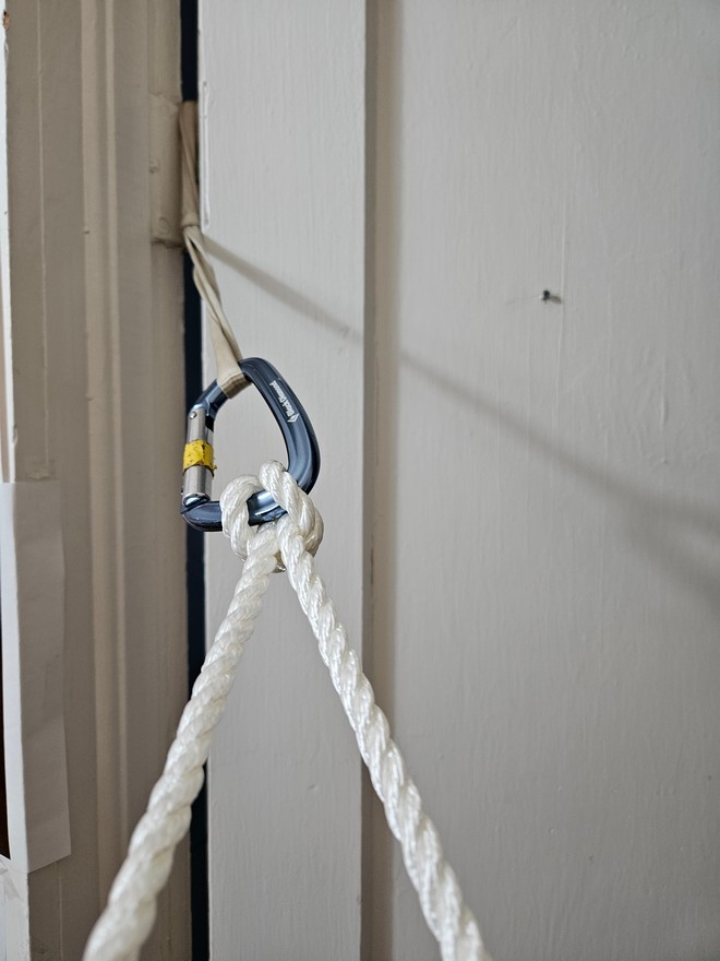 Longyi ropes, anchors, and carabiners are now for sale. These ropes are custom spliced, comfortable, and practical. We also offer anchor loops to make indoor practice simple and carabiners for safe connections…see the pictures below.